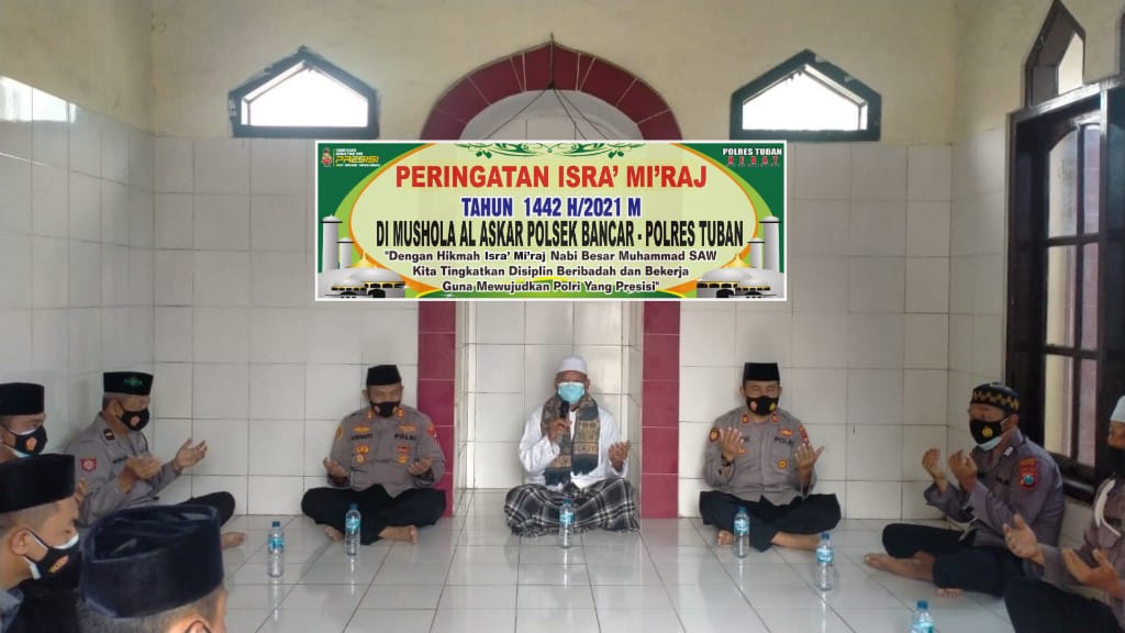 wacananews.com-polrestubanpoldajatim Dalam Rangka Peringatan Isra’ Miroj Nabi Muhammad SAW, Polsek Bancar Polres Tuban menggelar Doa bersama dan tausiyah bertempat di mushola Al Asqar Polsek Bancar Desa Bulu Jowo kecamatan Bancar Tuban Jatim. 10 Maret 2021.