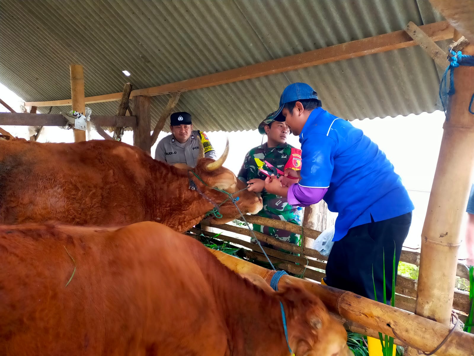 Polres Tuban, Polsek Grabagan bersama Koramil asembagus melakukan pengawalan penyuntikan vaksin hewan ternak antisipasi penyakit PMK yang di lakukan Oleh Dinas peternakan dan keswan kabupaten Tuban.