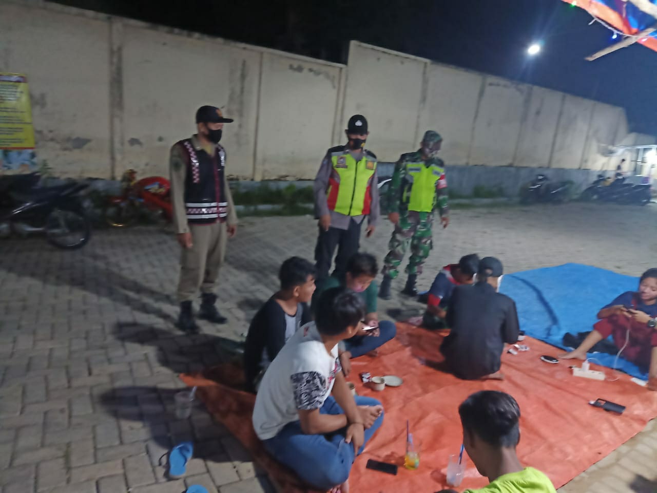 Nampak terlihat petugas giat Yustisi Protokol Kesehatan berada disalah satu warung kopi di Desa Sidomukti, sekaligus memberikan Himbauan untuk disiplin menerapkan Protokol Kesehatan utamanya memakai masker.