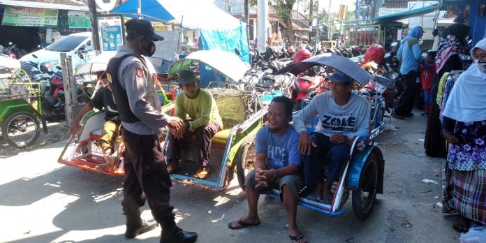 terlihat anggota patroli Polsek Merakurak Polres Tuban dengan semangat