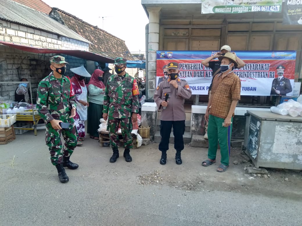 wacananews.com – PolresTubanPoldaJatim Polres Tuban,AKP SIMON TRIYONO Kapolsek Palang bersama sama dengan Forkopimka Kecamatan Palang, dan Bhabinkamtibmas serta Babinsa Desa Leranwetan Kecamatan Palang Kabupaten Tuban, melaksanakan giat Yustisi dan pembagian Masker GRATIS serta berikan Himbauan tentang Wajib Masker Implementasi dari Inpres No. 06 Tahun 2020 dan Perbup Kab Tuban No. 65 Tahun 2020,serta pemberlakuan PPKM Mikro yang bertujuan untuk melakukan pencegahan penyebaran virus COVID-19,Kepada pengujung dan penjual yang berada di Pasar Leranwetan turut Desa Leranwetan Kecamatan Palang Kabupaten Tuban, pada hari Rabu (02/06/2021).
