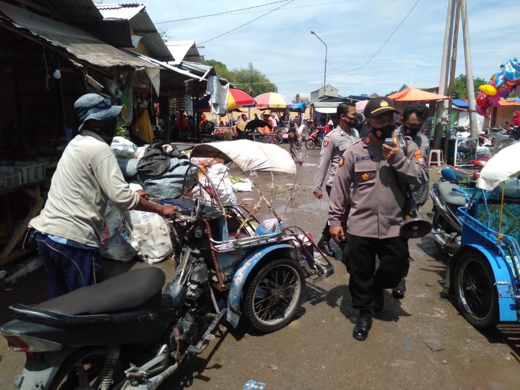 Dengan Menggunakan Pengeras suara berjalan kaki kelorong lorong Pasar untuk memberikan Himbauan Protokol Kesehatan, dan wajib mengunakan Masker, yang bertujuan mendisiplinkan masyarakat untuk mematuhi Inpres ,Perda ,dan Perbup Kab Tuban No. 65 Tahun 2020,dan peraturan pemerintah tentang pemberlakuan PPKM bersekala mikro,guna melakukan pencegahan dan memutus mata rantai penyebaran virus Covid 19.