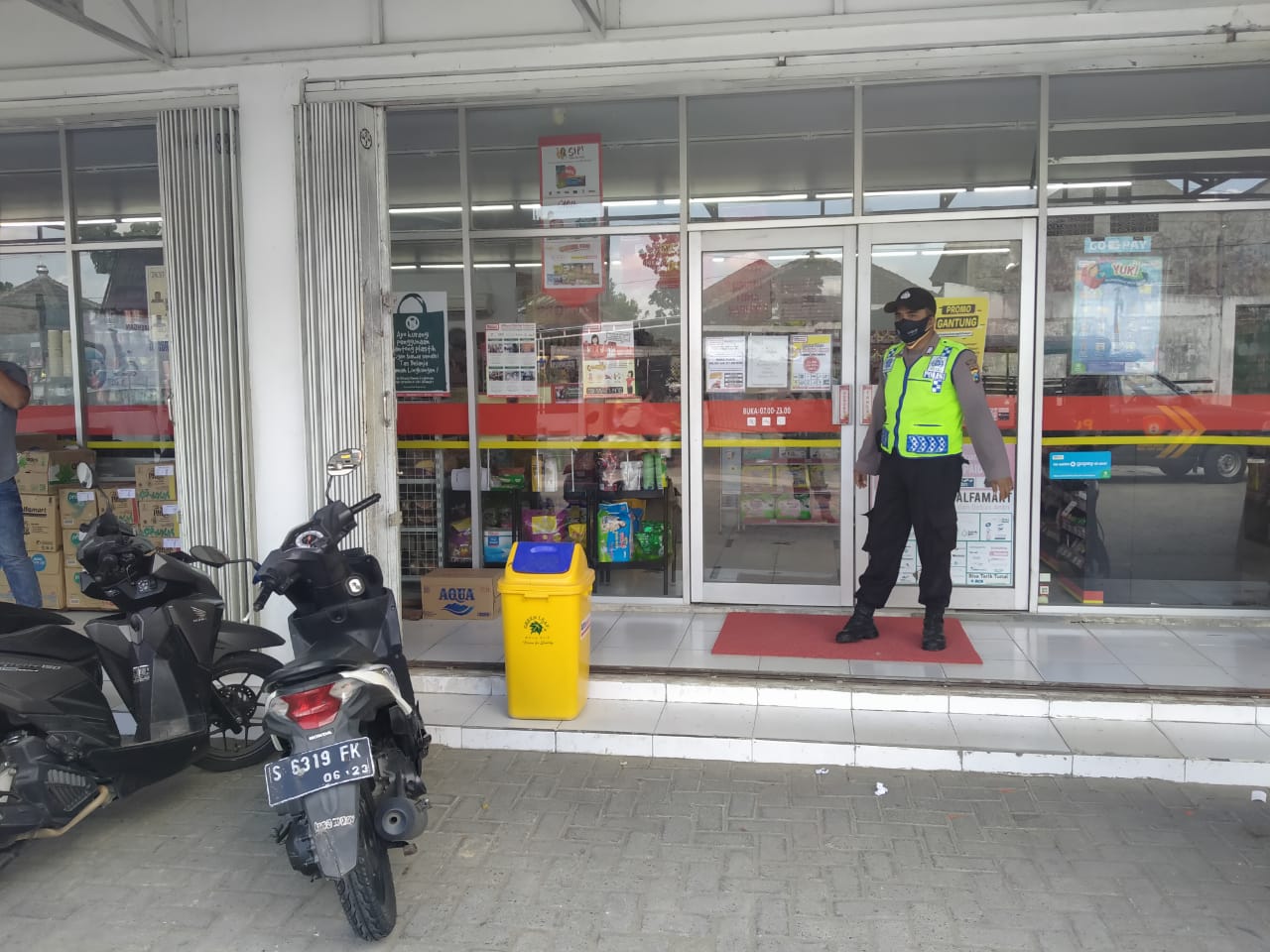 Jaga kamtibmas kepolisian sektor Parengan Resort Tuban melaksanakan kegiatan patroli ke Alfamart antisipasi kerawanan kejahatan curat, curas dan curanmor di lingkungan pertokoan Alfamart desa Parangbatu kecamatan Parengan kabupaten Tuban, sabtu, 17/4/2021