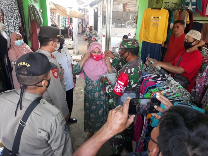wacananews.com – Guna mencegah penyebaran wabah Covid-19, Polsek Parengan polres Tuban bersama koramil dan satpol pp melaksanakan Giat yustisi protokol kesehatan di wilayah kecamatan Parengan kabupaten Tuban, jumat 12/ 03/ 2021