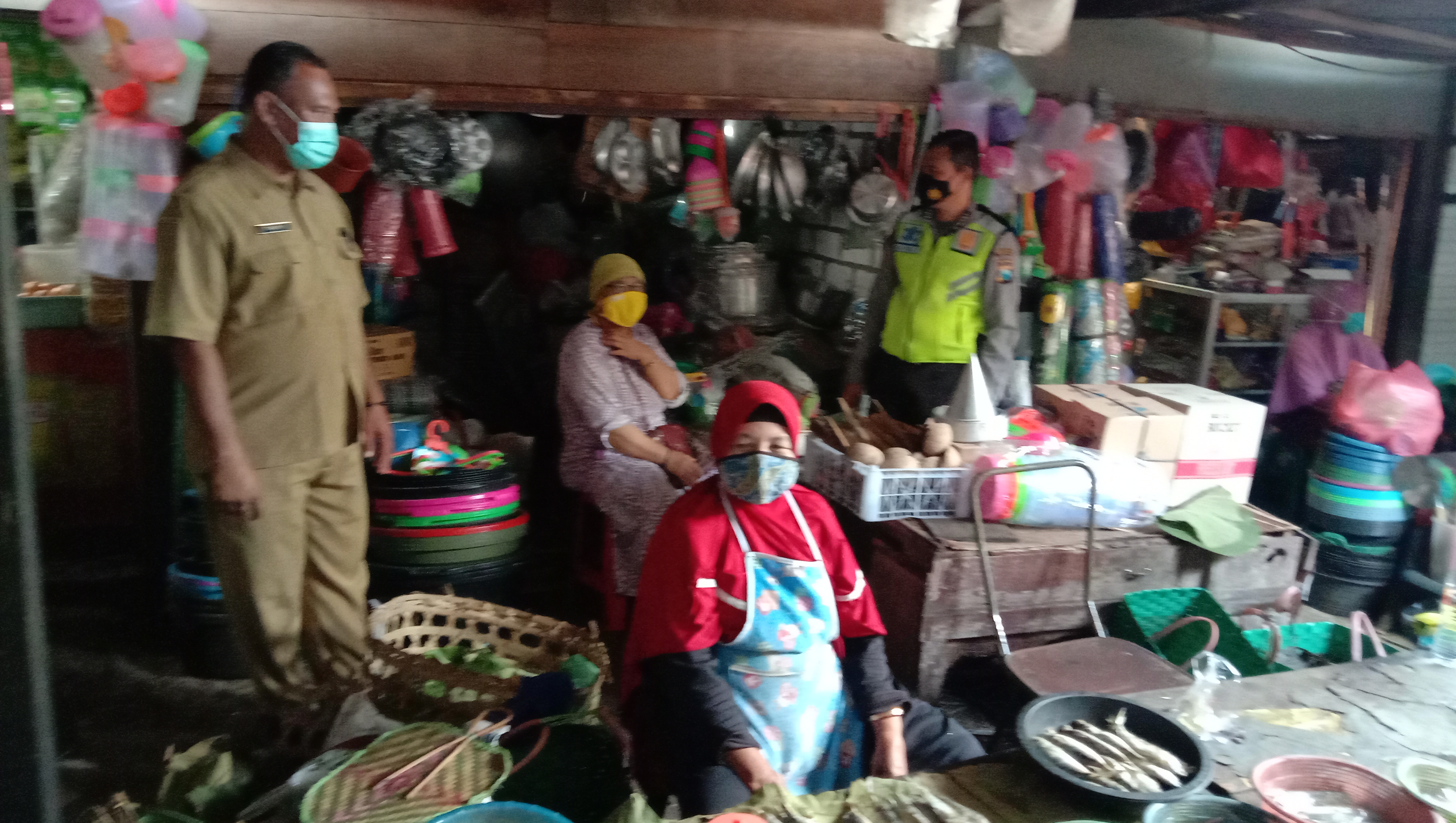 Kali ini petugas gabungan menyasar pengunjung pasar maupun para pedagang di Pasar. Dari pantauan petugas, sebagian besar masyarakat sudah tertib dalam protokol kesehatan. Namun ada beberapa yang ditemukan tidak menggunakan masker.