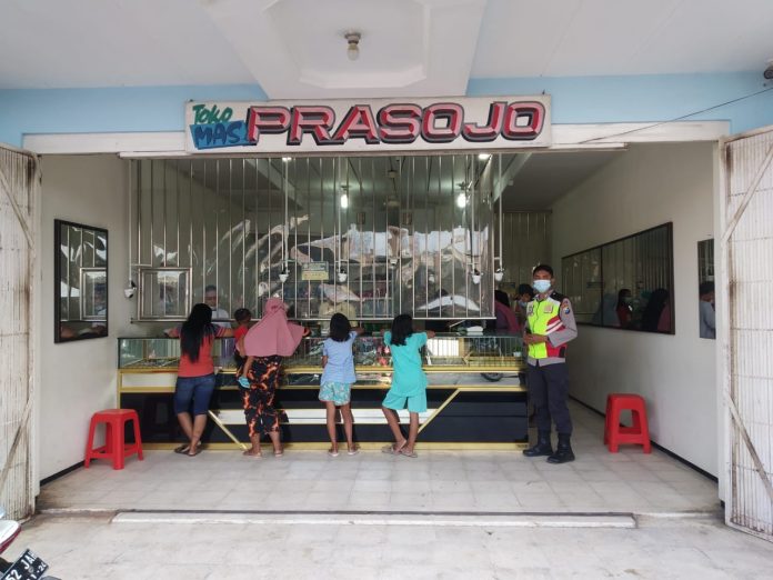 wacananews.com – PolresTubanPoldaJatim Untuk memberi rasa aman dan nyaman kepada penjual maupun pembeli emas serta mencegah terjadinya aksi tindak kejahatan, Polsek Plumpang Polres Tuban gencar melakukan patroli dialogis diseputar toko emas di pasar Plumpang Desa Plumpang Kecamatan Plumpang Kabupaten Tuban. Rabu, (09/06/2021).