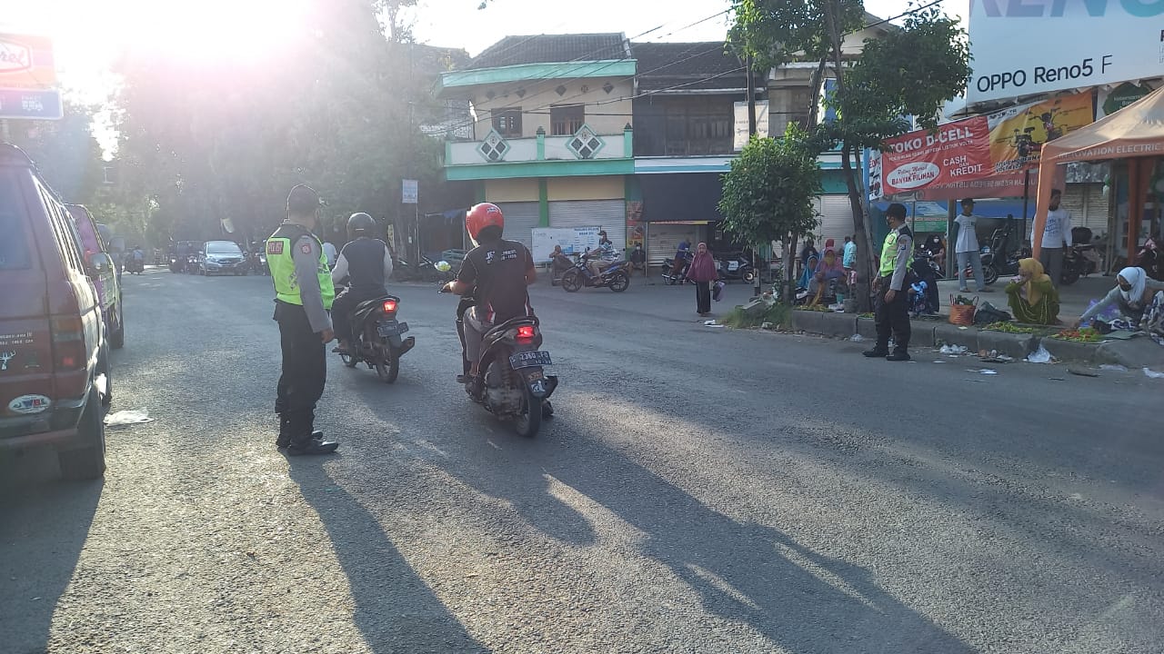 Menjelang Hari Raya Idul Fitri, Polsek Rengel Polres Tuban melaksanakan pemantauan lalu lintas dan pengaturan di Pos Pasar Rengel Kecamatan Rengel Kabupaten Tuban. Selasa, (11/05/2021).