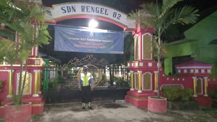 Salah satunya di SDN Rengel 2, pada kegiatan tersebut petugas mengecek situasi di sekitaran gedung sekolah yang disambangi, memastikan pagar dalam keadaan terkunci guna meminimalisir peluang seseorang untuk berbuat kejahatan.