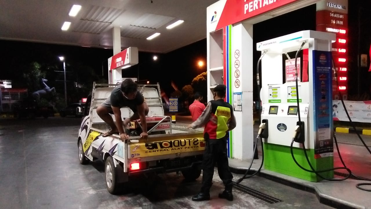 Polsek semanding Polres Tuban melaksanakan Patroli dialogis dengan karyawan Spbu antisipasi keterlambatan stok BBM yang akan berdapak terhadap siskamtibmas serta meresakan pengunjung Spbu