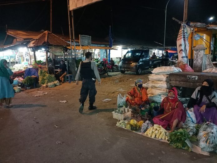 Patroli di itensifkan di pasar Baru Tuban sebagai Upaya Polsek semanding Polres Tuban untuk antisipasi kejahatan konfesional dilaksanakan melalui masyarakat yang selalu beraktifitas di jalan guna tangkal kejahatan jalanan Minggu(2/4/2021)