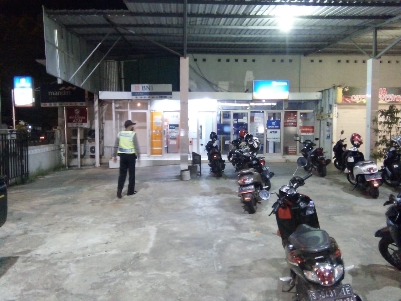 Petugas patroli mengecek satu persatu bilik atm bersama tersebut untuk memastikan tidak ada kerusakan dan pembobolan serta berdialogis dengan pengunjung atm serta memberikan tib tib sewaktu mengambil uang dalam jumlah besar serta menyarankan agar meminta pengawalan Kepolisian untuk menghindari hal hal yang di inginkan