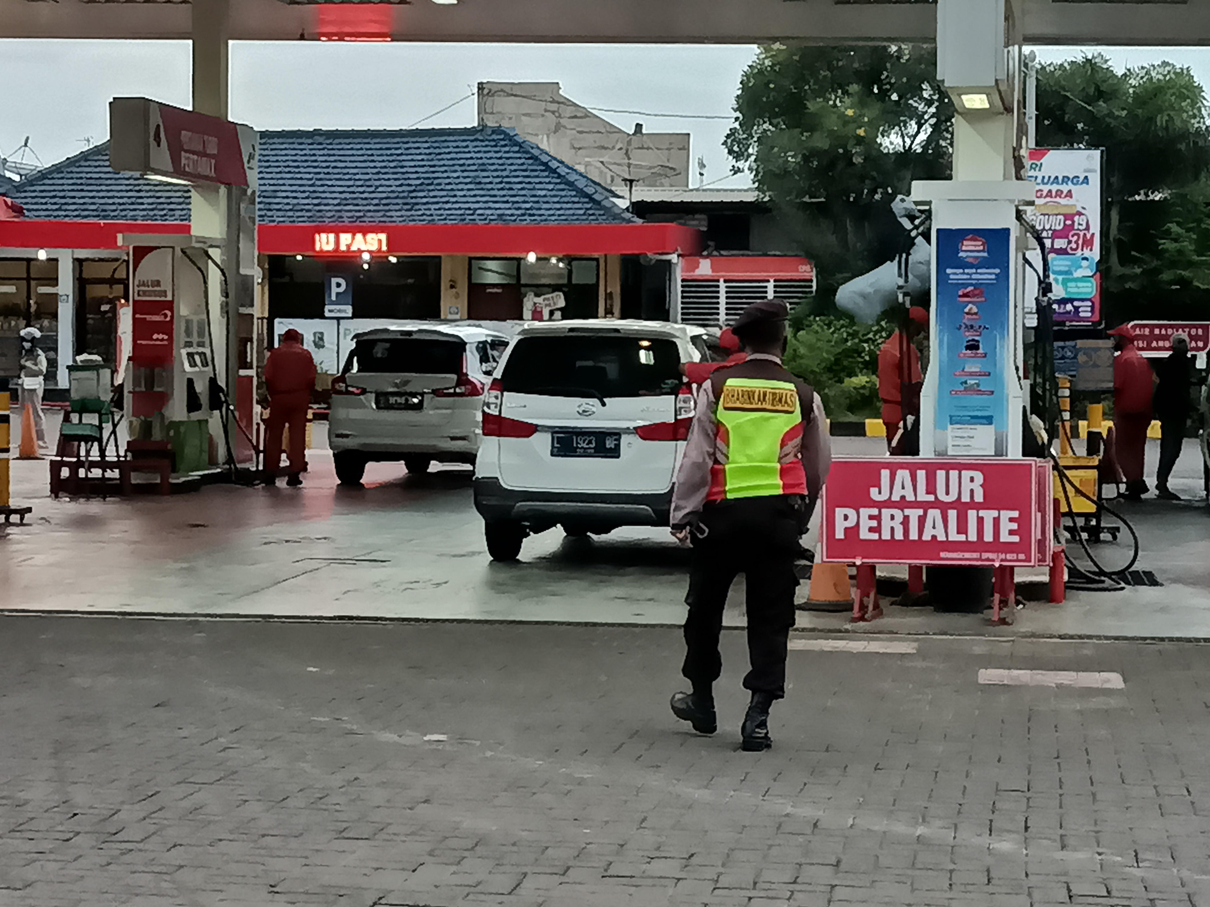 Polsek semanding Polres Tuban melaksanakan Patroli dialogis dengan karyawan Spbu antisipasi keterlambatan stok BBM yang akan berdapak terhadap siskamtibmas serta meresakan pengunjung Spbu