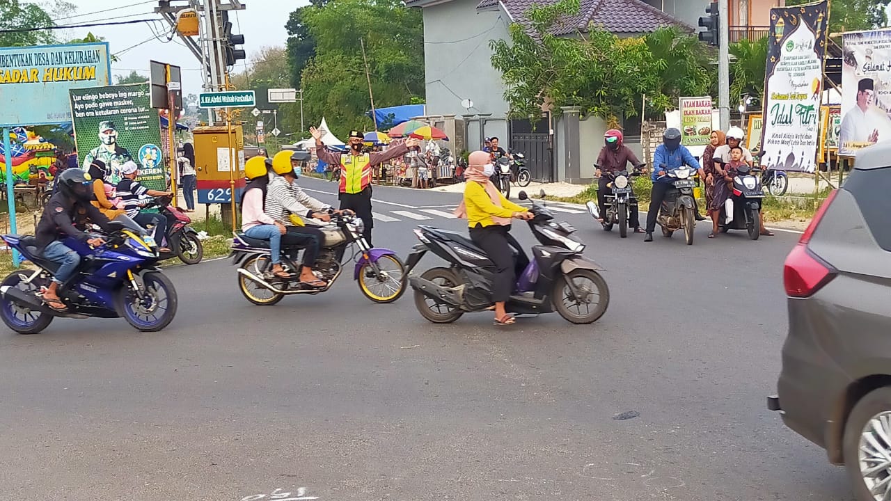 Kapolsek semanding Polres Tuban Iptu Carito SH mengelar anggotanya tukuh titik rawan kecelakan dan kemacetan disimpul jalan guna melaksanakan pengaturan dan memper lambat arus guna antisipasi kecelakaan