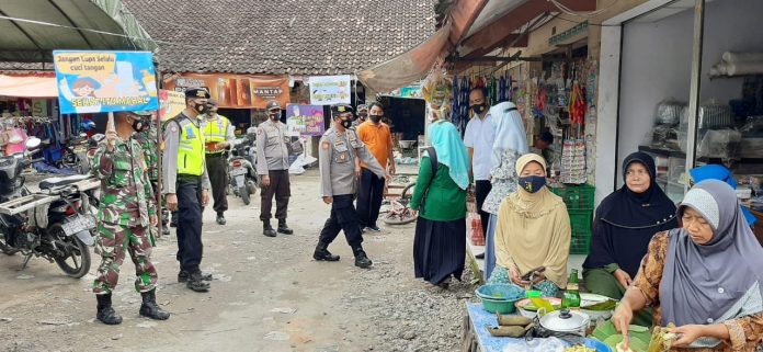 Kegiatan sosialisasi dilanjutkan dengan blusukan ke dalam pasar untuk mendisiplinkan warga agar mentaati protokol kesehatan dengan cara memberikan teguran secara humanis kepada pengunjung pasar yang diketahui tidak menggunakan masker.
