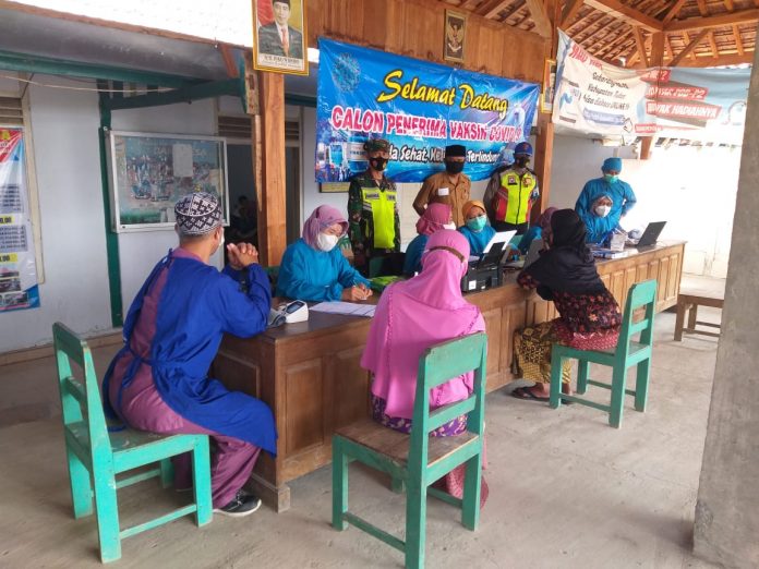 Personel Polsek Senori Polres Tuban Polda Jawa Timur, melalui Bhabinkamtibmas Desa Wonosari Aipda Ahmadi melaksanakannya pengamanan dan monitoring vaksinasi COVID-19 bagi masyarakat lanjut usia (lansia).