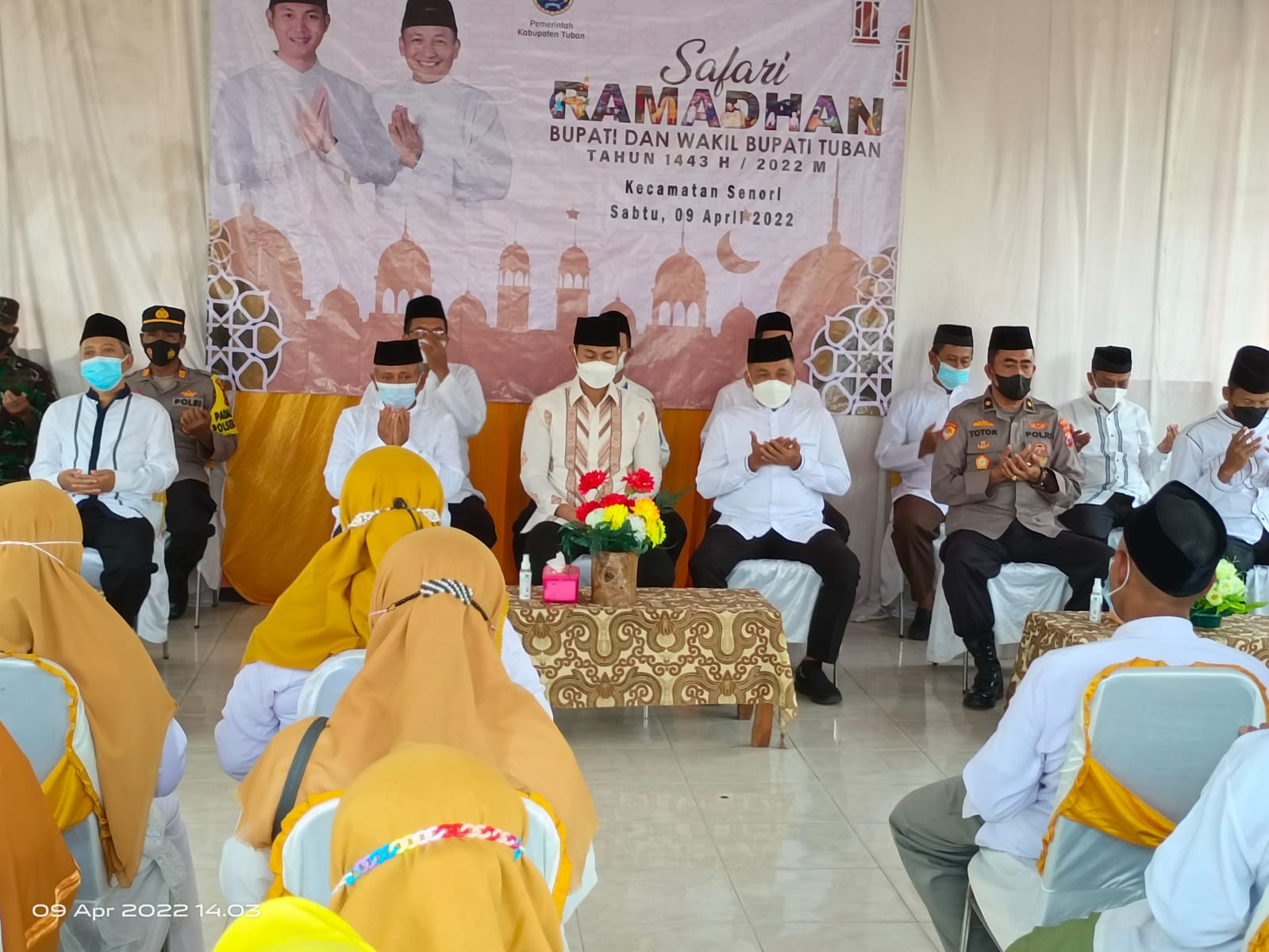 Senori – Memasuki hari ke-7, rombongan Forkopimda Tuban yang dipimpin oleh Bupati Tuban Aditya Halindra Fariski melaksanakan safari ramadhan di Kecamatan Senori, Sabtu (9/4/2022) sore.