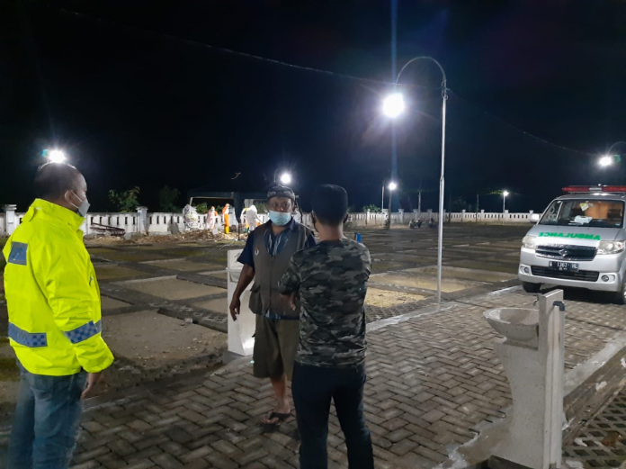 wacananews.com-polrestubanpoldajatim Anggota Polsek Tuban melakukan pengamanan prosesi pemakaman jenazah pasien Covid-19 di pemakaman SG desa Sumurgung kecamatan Tuban.