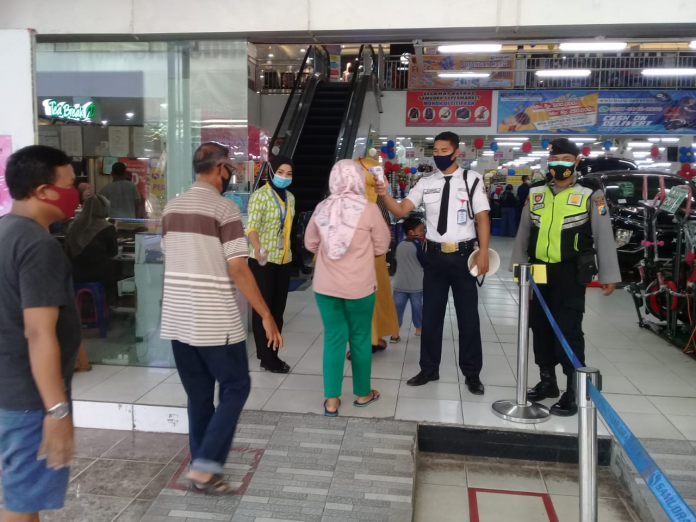 Dalam giat patroli pada hari ini anggota unit sabhara Polsek Tuban Yaitu Aipda Arif Widya bersama rekannya sekaligus melakukan pemantau penerapan protokol kesehatan di swalayan tersebut dan memberikan himbauan kepada para pengunjung swalayan yang berbelanja agar tetap patuh dan disiplin dalam melaksanakan protokol kesehatan.