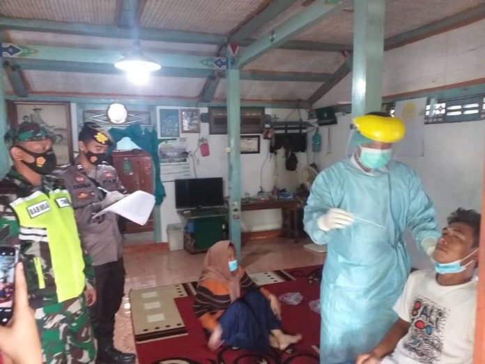 Pendampingan Tracking Nakes Puskesmas yang dilakukan oleh Bhabinkamtibmas bersama Bhabinsa dan Pemdes dalam rangka pencegahan penyebaran Virus Corona, dimana dilakukan pemeriksaan kesehatan dini oleh petugas, ” ucap Kapolsek AKP Totok Wijanarko, S.Pd.