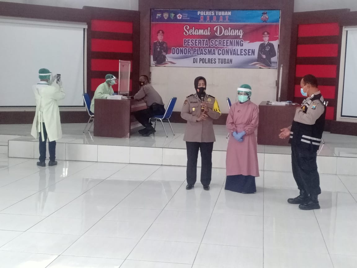 wacananews.com – PolresTubanPoldaJatim Polres Tuban menggelar screening donor darah plasma konvalesen bagi anggotanya yang sudah dinyatakan sembuh dari virus COVID-19, Senin (01/02/2021).Â