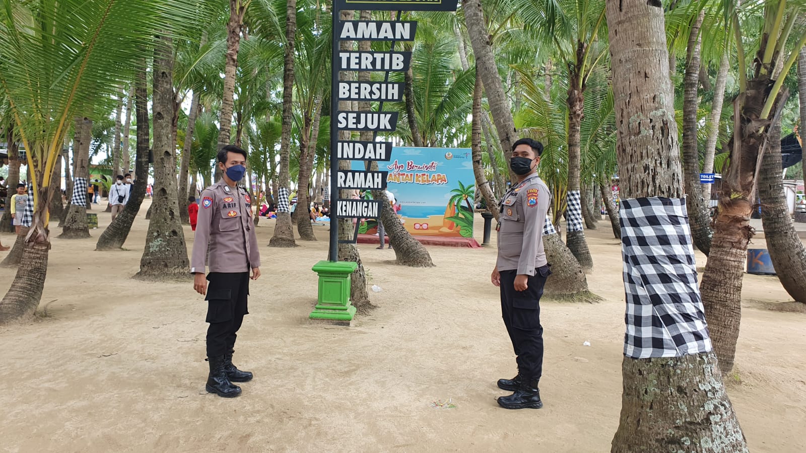 Polsek Palang Polres Tuban Polda Jatim,Polsek Palang Polres Tuban secara rutin disaat hari libur akhir pekan melaksanakan patroli di tempat tempat wisata, yaitu tempat wisata Pantai Kelapa Kelurahan Panyuran Kecamatan Palang Kabupaten Tuban, untuk berikan rasa aman dan nyaman bagi pengunjung yang sedang berlibur.