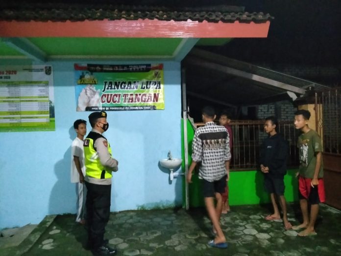 Pada kesempatan itu, ia bertemu dengan beberapa pemuda yang sedang nongkrong di sekitar posko. Bhabinkamtibmas inipun lalu memberikan edukasi kepada para pemuda yang ditemuinya.