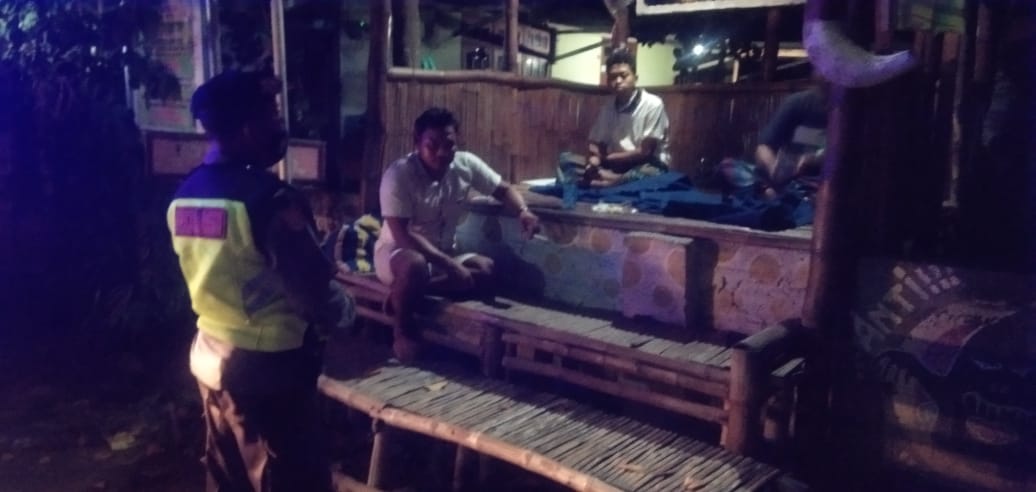 Petugas menyampaikan arahan supaya warga di poskamling tetap waspada terhadap orang asing maupun segala sesuatu yang mencurigakan, serta segera melapor bila ada potensi gangguan kamtibmas.
