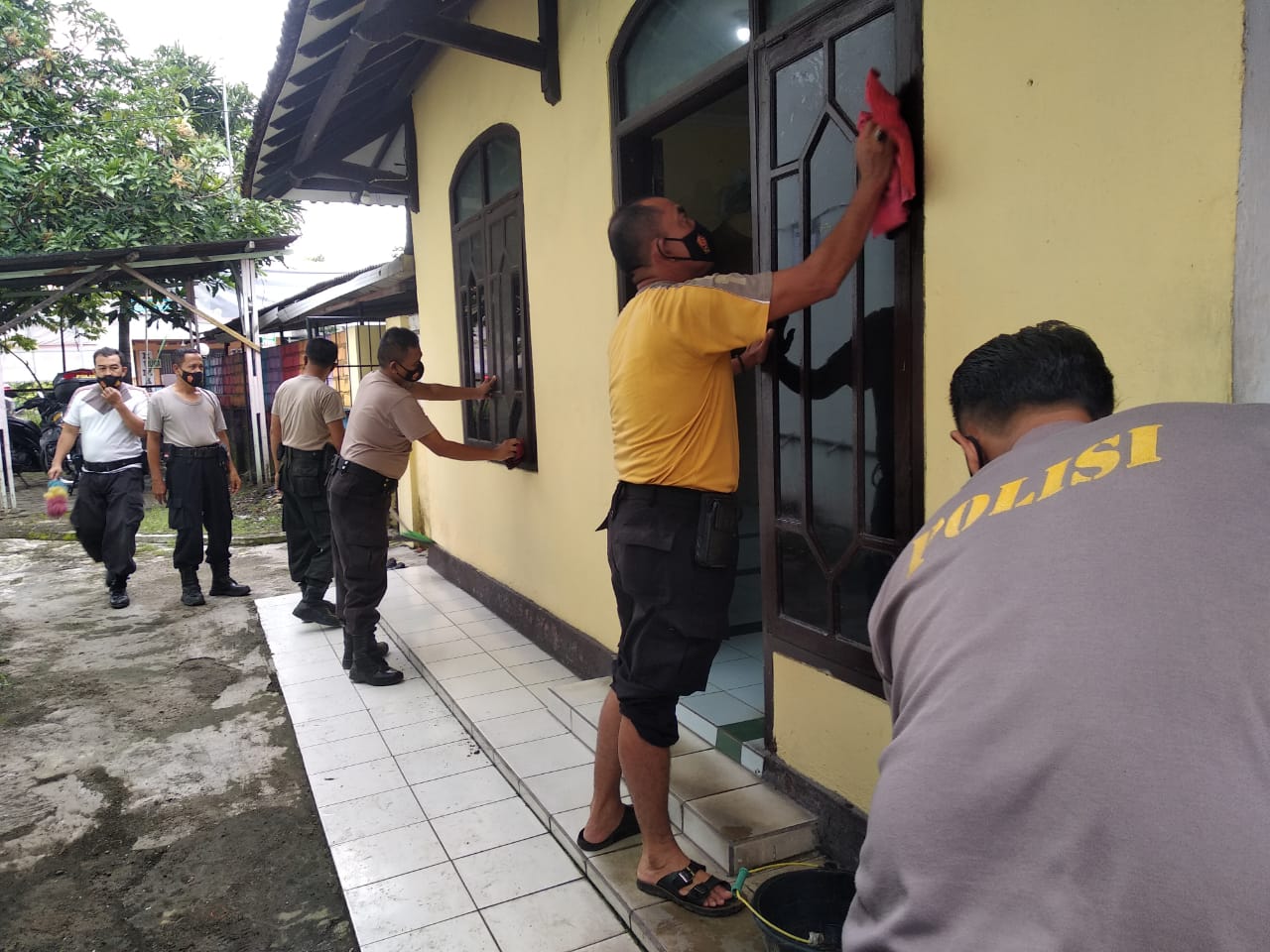 “Kegiatan kerja Bhakti dengan cara bersihkan kaca jendela, tempat wudu, membersihkan lantai dan sekitar halaman masjid, termasuk penyemprotan Cairan Disenfektan, mengingat Mushola Kantor Polsek ini juga digunakan untuk orang umum, ” ucap Kapolsek.