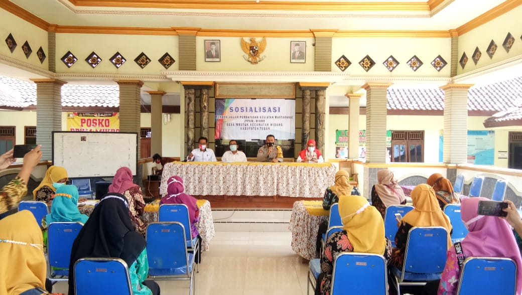 wacananews.com-polrestubanpoldajatim Bhabinkamtibmas Desa Mrutuk Polsek Widang Aiptu Febri Afandi, S.H., bersama Babinsa dan Kepala Desa melaksanakan Sosialisasi dan edukasi kepada warga masyarakat tentang Prokes 5-M dalam mendukung program PPKM Mikro, Rabu (17/03/2021).