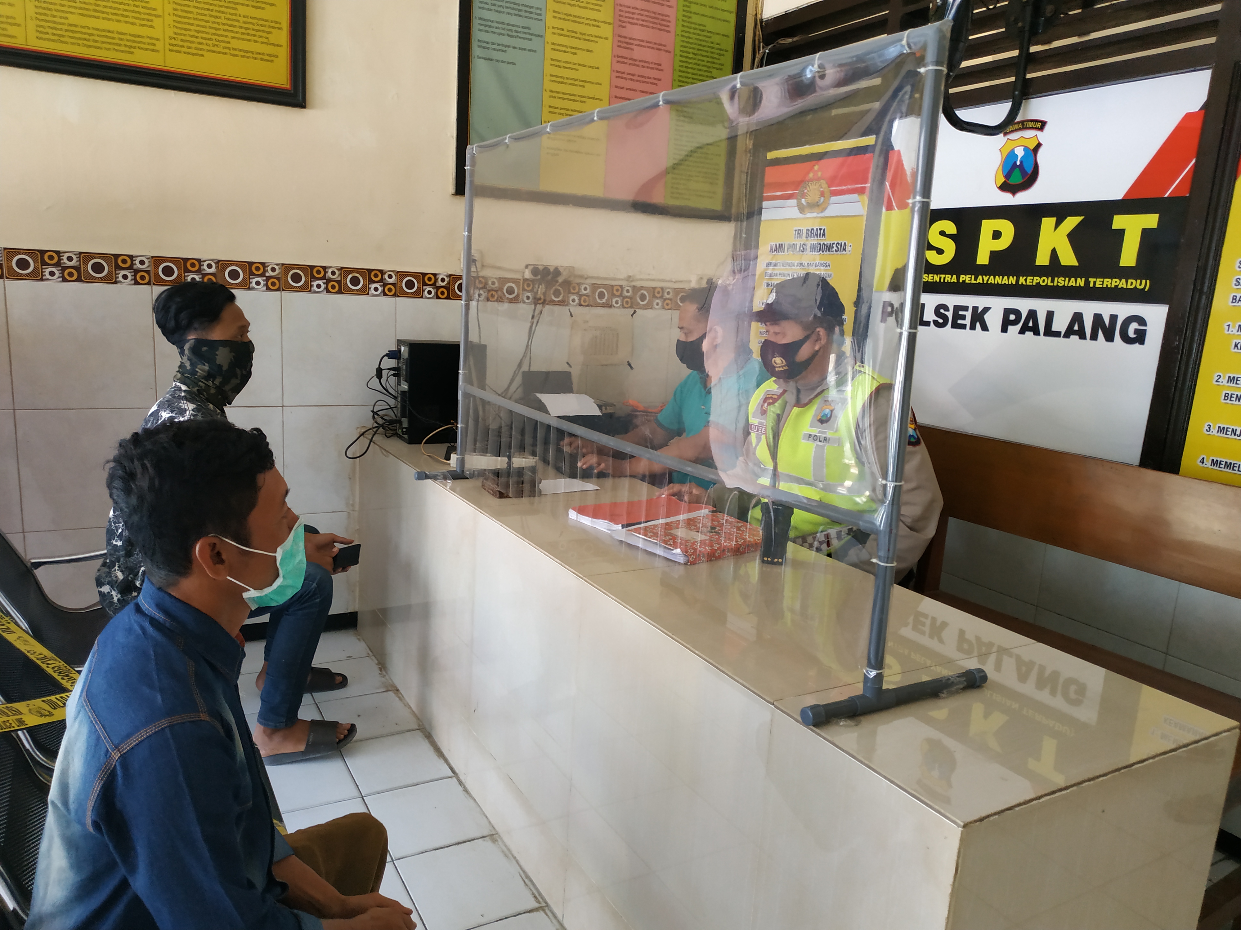wacananews.com-polrestubanpoldajatim Sentral Pelayanan Kepolisian Terpadu ( SPKT) Polsek Palang Polres Tuban, tetap memberikan Pelayanan Kepada Masyarakat yang datang ke Polsek Palang Polres Tuban dengan mematuhi protokol Kesehatan