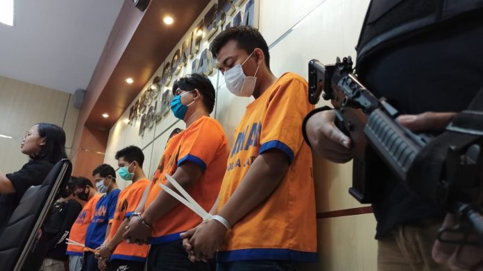“Kelima tersangka ini mempunyai peran masing-masing, sedangkan untuk para tersangka diamankan di Jalan by pass, Kecamatan Sedati, Sidoarjo,” jelas Kombes Pol Gatot Repli Handoko, Kabid Humas Polda Jatim, Selasa (11/5/2021) sore.