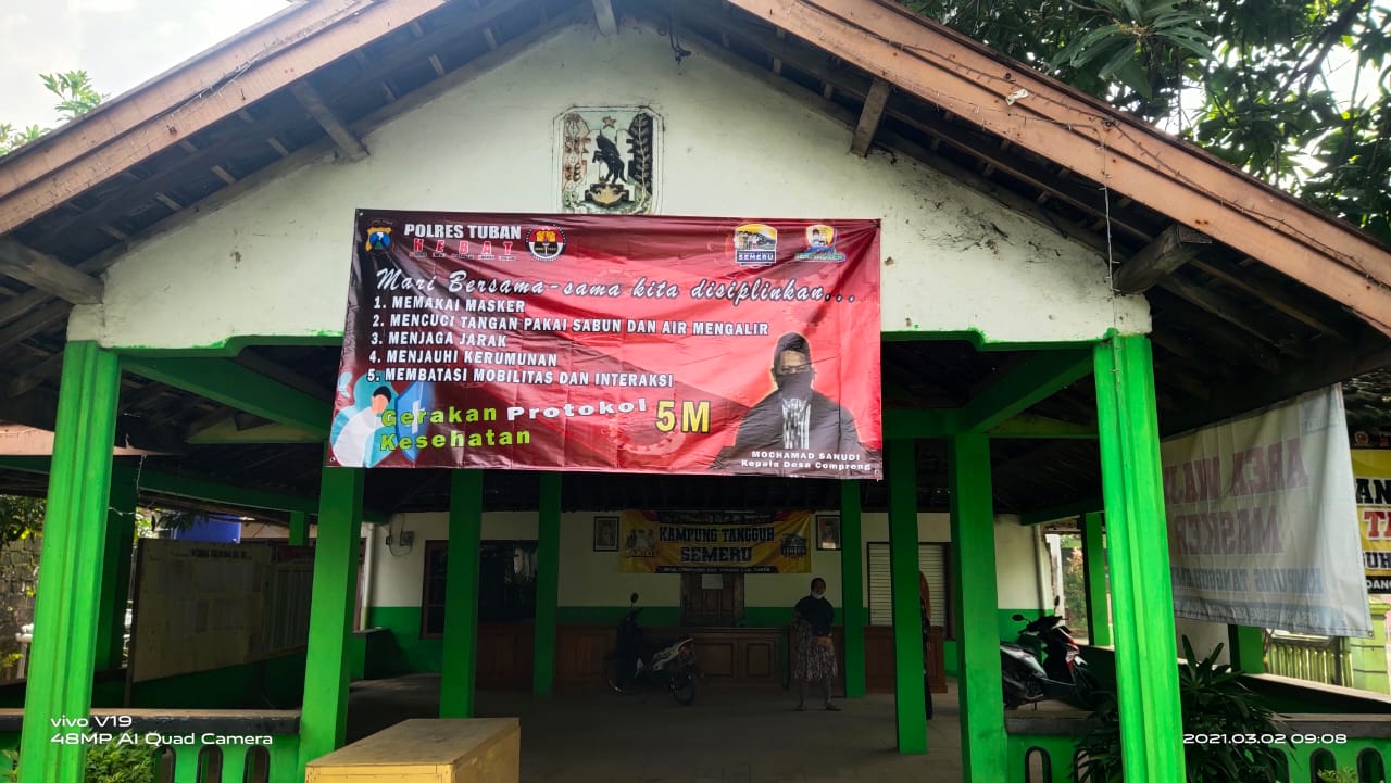 Melalui Posko Penanganan Covid-19 yang berada di desa, Bhabinkamtimas Polsek Widang bersama Babinsa dan Pemerintah Desa setempat dibantu tenaga kesehatan melakukan berbagai kegiatan.