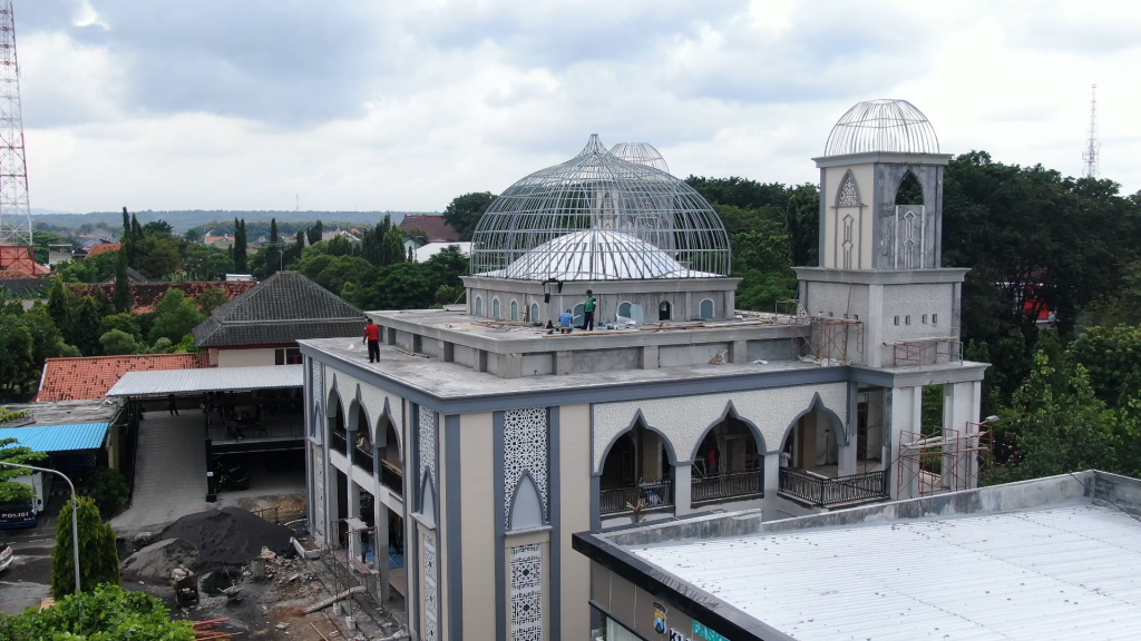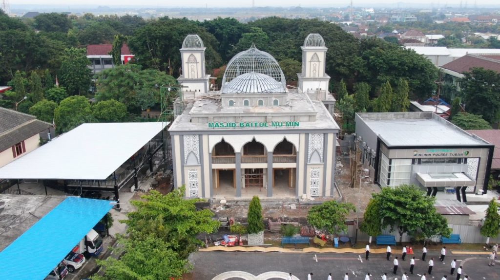 Tuban – Proses Pembangunan Masjid Baitul mu’min Polres Tuban masih terus dilakukan, saat ini sudah memasuki tahap Finishing.