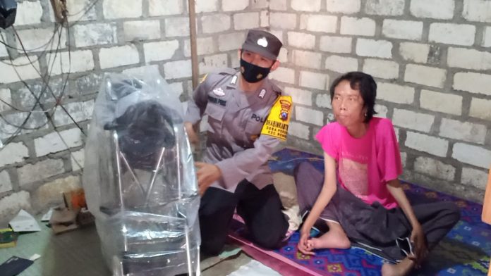 wacananews.com – Sungkono (39), Warga Desa Pekuwon Kecamatan Rengel Kabupaten Tuban terlihat begitu sumringah ketika Bripka Puguh Prasetyo, Anggota Bhabinkamtibmas Polsek Rengel Polres Tuban menyambangi rumah sederhana miliknya. Kamis, (22/4/2021).