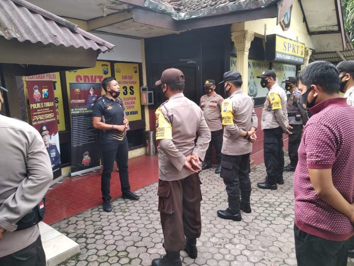 wacananews.com-polrestubanpoldajatim Bertempat di halaman depan Kantor Polsek Widang, anggota melaksanakan apel pagi. Apel pagi dipimpin oleh Kanit Reskrim IPDA Kiswoyo, S.H, Senin (05/04/2021).