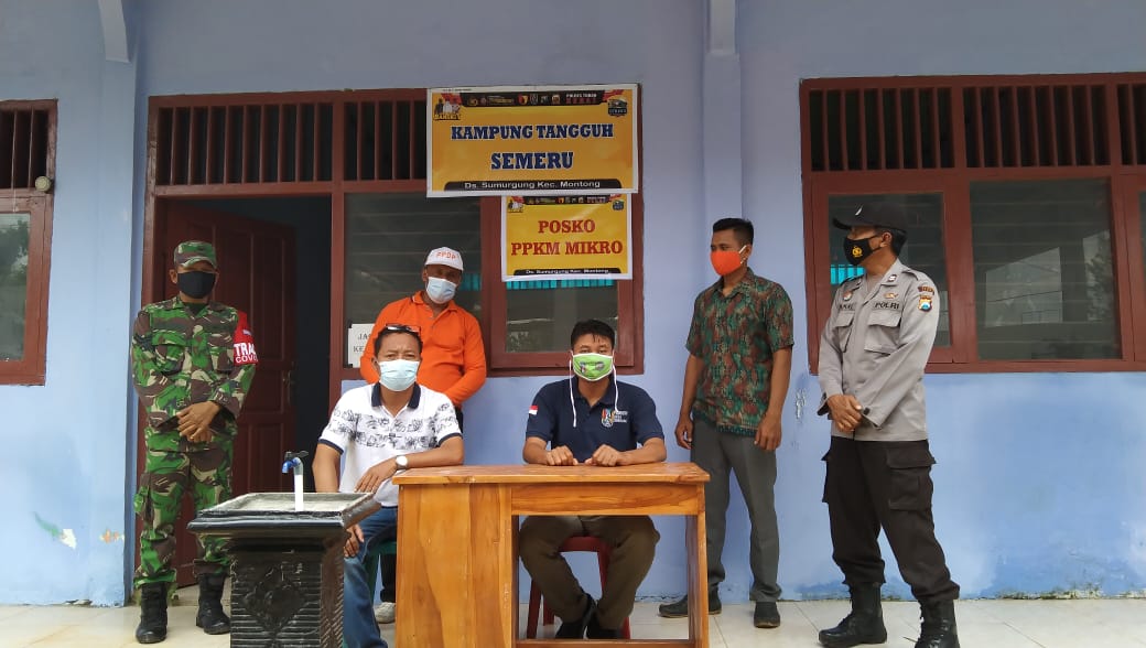 Terlihat sinetgitas 3 tiga pilar polsek montong Polres Tuban mengajak masyarakat untuk sama-sama mencegah meluasnya virus corona sesuai dengan kedisiplinan warga terhadap protokol kesehatan seperti yang disampaikan anggota polsek montong dalam rangka penanganan terkait cepatnya penyebaran virus Corona sangat mengganggu keamanan dan ketertiban masyarakat
