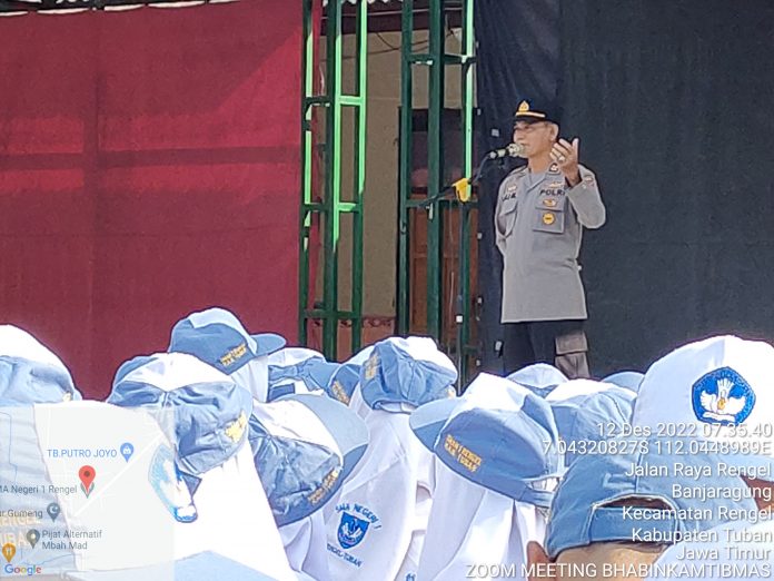 sambutannya Waka Polsek Rengel menyampaikan himbauan agar para siswa