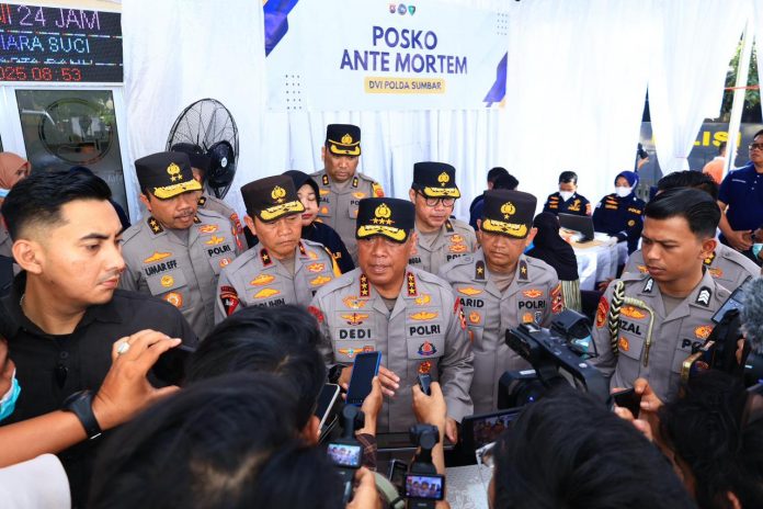 Padang – Wakapolri bersama rombongan meninjau Posko Antemortem DVI Pusdokkes Polri di Polda Sumatera Barat pada Kamis (4/12/2025) sekitar pukul 08.30 hingga 10.00 WIB. Kunjungan ini dilakukan untuk memastikan kesiapan, kelengkapan, serta pelaksanaan proses identifikasi korban oleh Tim DVI di lapangan pascabencana yang terjadi di wilayah tersebut.