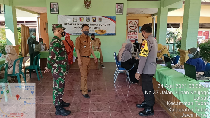 dan Danramil kec. Tuban melaksanakan monitoring kegiatan Vaksinasi