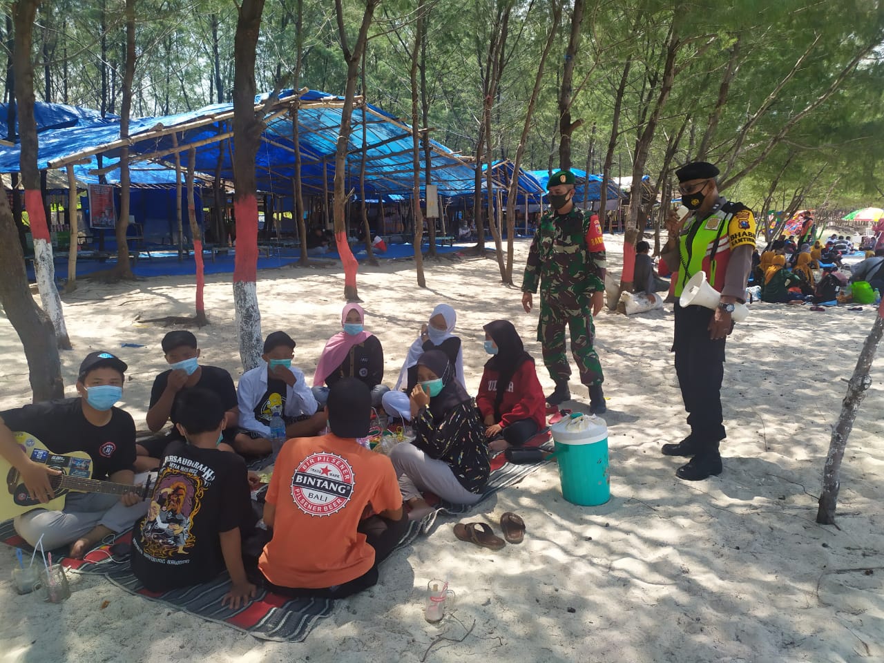 Anggota polsek Jenu beserta anggota Koramil Jenu melaksanakan giat rutin patroli di tempat tempat keramaian serta menghimbau warga serta pengunjung tempat wisata untuk selalu mentaati protokol kesehatan serta penerapan 5M. Anggota polsek jenu mengecek kesiapan pengelola untuk menyediakan tempat cuci tangan maupun mengingatkan pengunjung untuk wajib menggunakan masker serta jaga jarak aman, menjahui kerumunan di setiap kegiatan.
